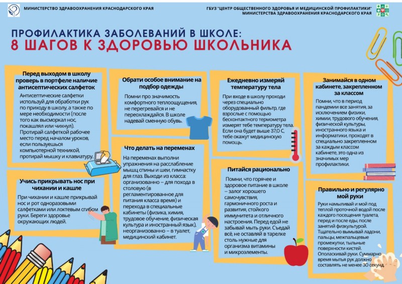 Роспотребнадзор напоминает о простых правилах, которые помогут снизить риски заболевания ребенка гриппом, ОРВИ или новой коронавирусной инфекцией в школе.